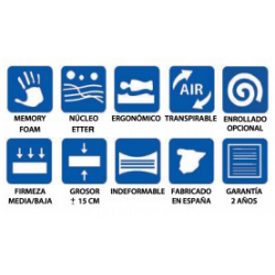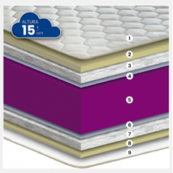 Tipo de colchón: MUELLE ENSACADO Núcleo: CARCASA ULTRAFIRME F.17 + TNT Composición 1ª Tapa - Acolchado: CONTINUO - SALTO - Tejido: STRECH - Visco: VISCOTEKNIC / 2 cm - Espuma: SOFT / 2 cm - TNT: 15GR Composición 2ª Tapa - Acolchado: CONTINUO - SALTO - Tejido: STRECH - Visco: VISCOTEKNIC / 2 cm - Espuma: SOFT / 2 cm...
