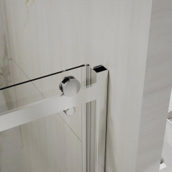 Para plato de ducha rectangular. Ancho: 157 a 160cm. Vidrio templado de 6mm. Una puerta de corredera. Con cierre magnético en la puertas para evitar la salida del agua. Con rodamientos dobles superiores para facilitar la apertura de la mampara.