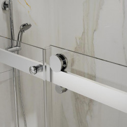 Para plato de ducha rectangular. Ancho: 137 a 140cm. Vidrio templado de 6mm. Acabado del cristal: Serigrafiado Una puerta de corredera. Con cierre magnético en la puertas para evitar la salida del agua. Con rodamientos dobles superiores para facilitar la apertura de la mampara.