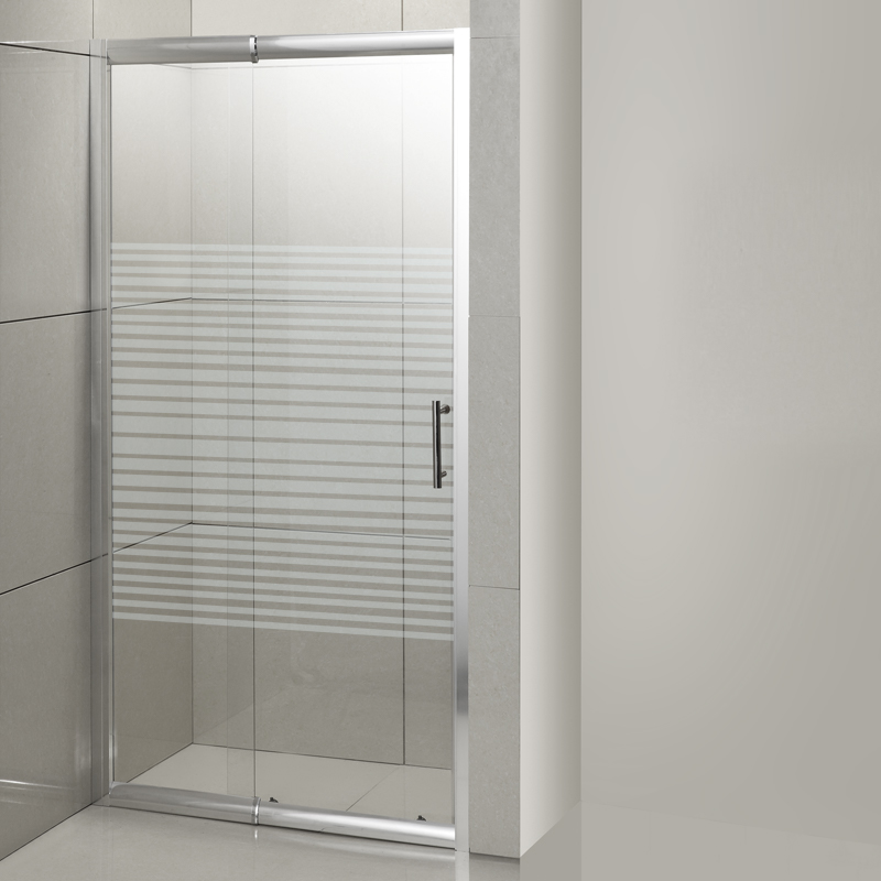 Para plato de ducha rectangular. Ancho: 157 a 160cm. Vidrio templado de 6mm. Acabado del cristal: Serigrafiado Una puerta de corredera. Con cierre magnético en la puertas para evitar la salida del agua. Con rodamientos dobles superiores para facilitar la apertura de la mampara.