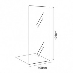 • Marco negro. • Vidrio de 8 mm. • Barra sujeción pared 1 metro. • Medidas: 1950x800 mm.