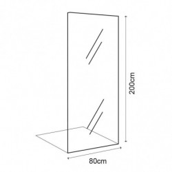 Medidas Cristal abatible: 65cm Medidas Cristal fijo: 55cm. Altura: 140cm. Vidrio templado de 6mm. Marco de aluminio. Abatible 180º.