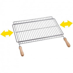 Parrilla barbacoa zinc extensible . 5cm por lado. Adaptable a cualquier barbacoa. Mangos de madera y varillas reforzadas. 50/60 x 40cm