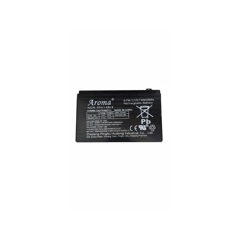Bateria de plomo 12 Voltios 7 Amperios regulada por válvula de seguridad VRLA, fabricada con tecnología AGM. Datos técnicos: Voltaje Nominal (V): 12 Voltios Capacidad Nominal (AH): 7 Amperios Dimensiones: 15x6.5x9.5 (largo x ancho x alto)