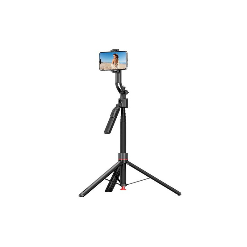 - Material: aluminio + plástico- Altura: hasta 160cm- Soporte para smartphone apertura hasta 10cm- Lámpara led de 10" (26cm diámetro) con mando para regulación de luz- Control remoto disparador- Temperatura de color regulable 2700K - 6500K- Trípode plegado: 24cm