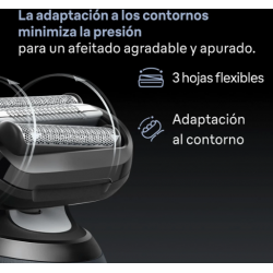 Afeitadora eléctrica con centro de limpieza y carga SmartCare, 3 hojas flexibles, cabezal 360º Flex, 3 modos, pantalla LED, uso en seco y en mojado, hasta 60 minutos de autonomía