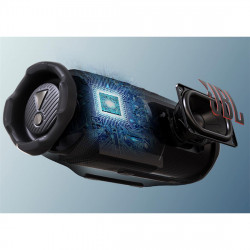• Bluetooth. • Función de radio FM. • Función manos libres. • Puerto Micro SD y USB, para reproducir audio. • Soporte TWS (True Wireless System), podrás sincronizar dos altavoces para crear un sistema estéreo y duplicar la potencia. • Luces LED. • Distancia de transmisión: 10 m. • Potencia: 10W.