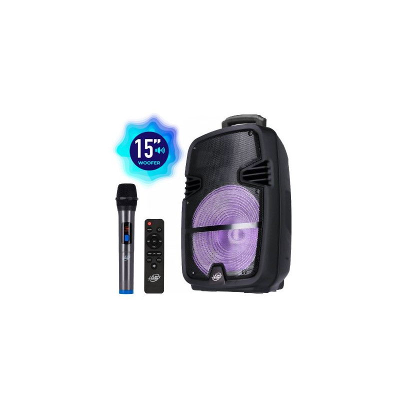 3 vías con efecto 5.1: 119 mm de 50W*1 + 78 mm de 15W*2 + 66MM 10W*2. Sonido de alta calidad con una potencia de 100W y graves potentes. Recargable con batería de litio de 15000mAh, tiempo de reproducción de aprox. 10 horas y con una distancia de transmisión de 10 metros. Karaoke: incluido micrófono inalámbrico. Conexiones de BT/USB/TF/AUX/FM/TWS y...