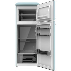 Frigorífico Retro: Alto 148,2, Ancho 55,2, Fondo 62,1 cm. Capacidad 215L. Nos permite almacenar una gran variedad de alimentos, con acceso fácil y ordenado. LED interior. Las luces Led aportan más luz, más ahorro energético y menos calor. Tirador cromado. Control de temperatura. Bandejas cristal. Clase E. Ahorro energético en el día a día. Frigorífico...