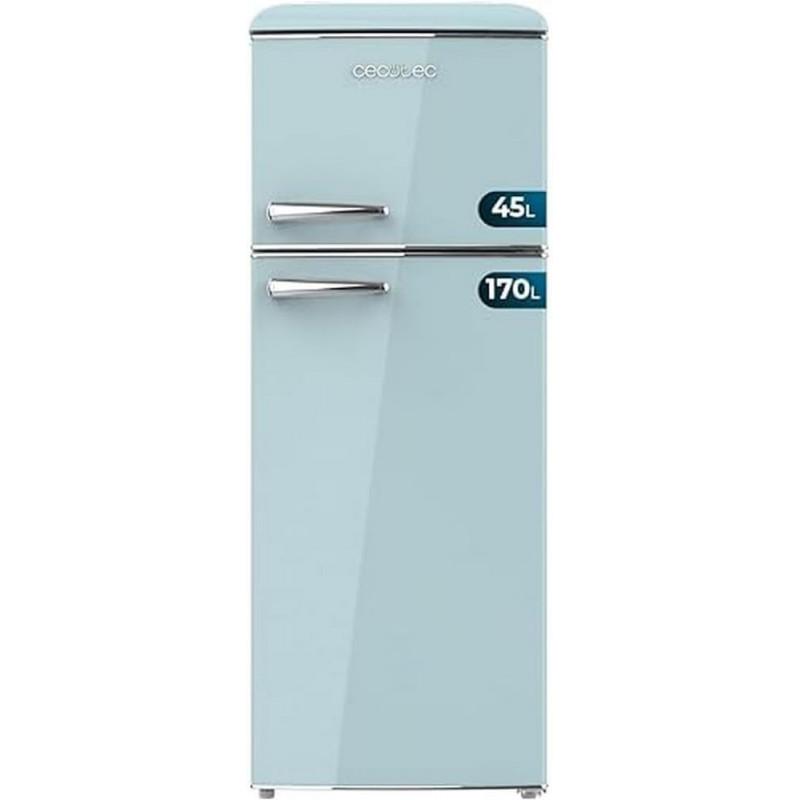 FRIGORIFICO RETRO DOS PUERTAS - CECOTEC 02754, 215 LITROS, CLASE E, BOLERO COOLMARKET 2D ORIGIN 215, TIRADOR CROMADO, BLUE.