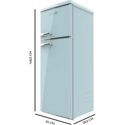 Frigorífico Retro: Alto 148,2, Ancho 55,2, Fondo 62,1 cm. Capacidad 215L. Nos permite almacenar una gran variedad de alimentos, con acceso fácil y ordenado.  LED interior. Las luces Led aportan más luz, más ahorro energético y menos calor. Tirador cromado. Control de temperatura. Bandejas cristal. Clase E. Ahorro energético en el día a día. Frigorífico...