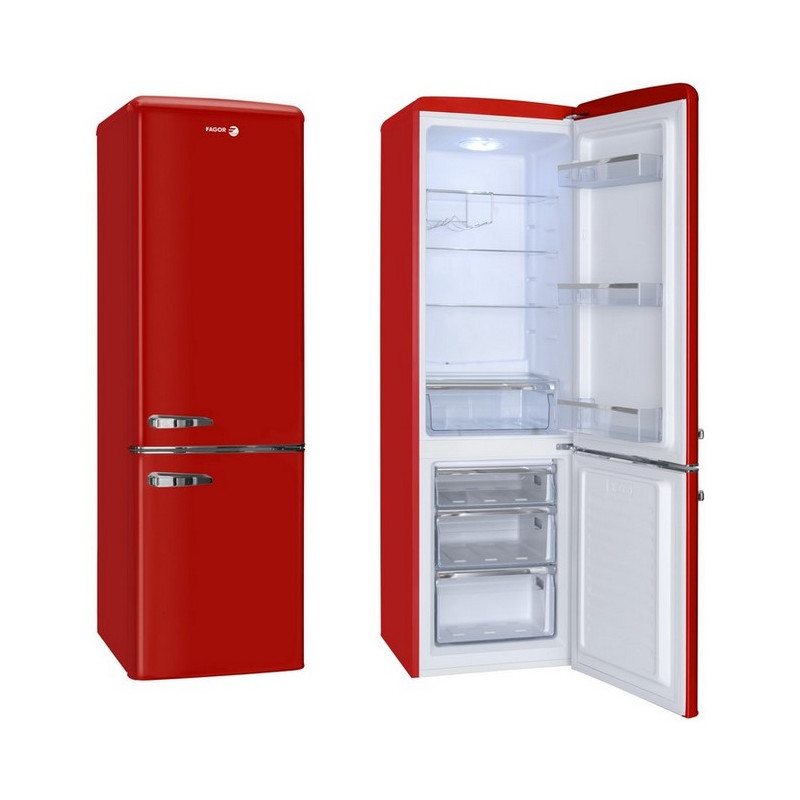 FRIGORIFICO RETRO COMBI - FAGOR 3FFV1855R, CICLICO, 181 LITROS, CLASE E, ALTO 181, ANCHO 55, FONDO 61,5 CM, COLOR ROJO.