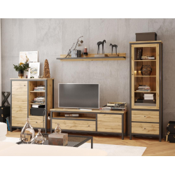 www.mipuntomovil.com Vitrina 2 puertas + 2 cajones modelo NEBRASKA 9563, fabricada en madera de pino macizo natural de estilo rustico y es perfecta para salones rústicos. Quedará ideal si lo combinas con el resto de la colección Nebraska.