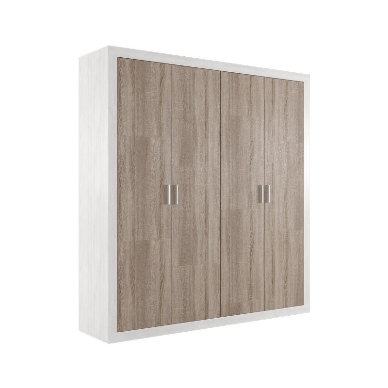 Con un ancho de 196 cm, el armario SARA de cuatro puertas se presenta en un acabado muy luminoso que combina los colores de madera de estilo nórdico para formar un armario que quedará espectacular en cualquier dormitorio de matrimonio si lo combinamos con el cabecero con mesita Sara, que también puedes encontrar, e incluso si lo colocamos solo como complemento a otro armario.