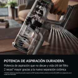 Fácil eliminación del pelo de mascota. Aspira un 30% más rápido* con el kit de accesorios para animales integrado. 2in1: aspirador escoba y aspirador de mano. Batería de Ion Litio de alta durabilidad para un rendimiento constante y rápida recarga. Tobera para alfombras. Dos posiciones de funcionamiento. Filtro desmontable y lavable. Depósito fácil de...