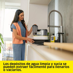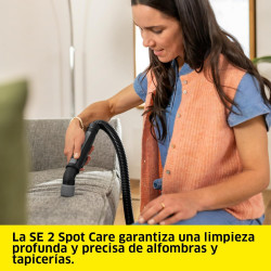 El lava-aspirador SE 4002 está equipado con el sistema de confort 2 en 1 con manguera de pulverización y aspiración integrada y una boquilla de lavado para la limpieza de tapicerías. El equipo de extracción mediante pulverización proporciona una limpieza profunda e higiénica en superficies textiles (por ejemplo, alfombras, colchones, asientos de...