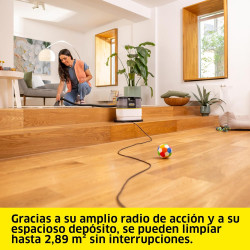 Ajuste sin herramientas del asa, fijación de los accesorios y del cable; cambio rápido de la boquilla para suelos a la boquilla para tapicerías Gracias al compartimento integrado, las pastillas se encuentran siempre a mano Diversos accesorios para usos múltiples (por ejemplo, boquilla de ranuras para la limpieza de asientos de automóviles y tapicerías)...