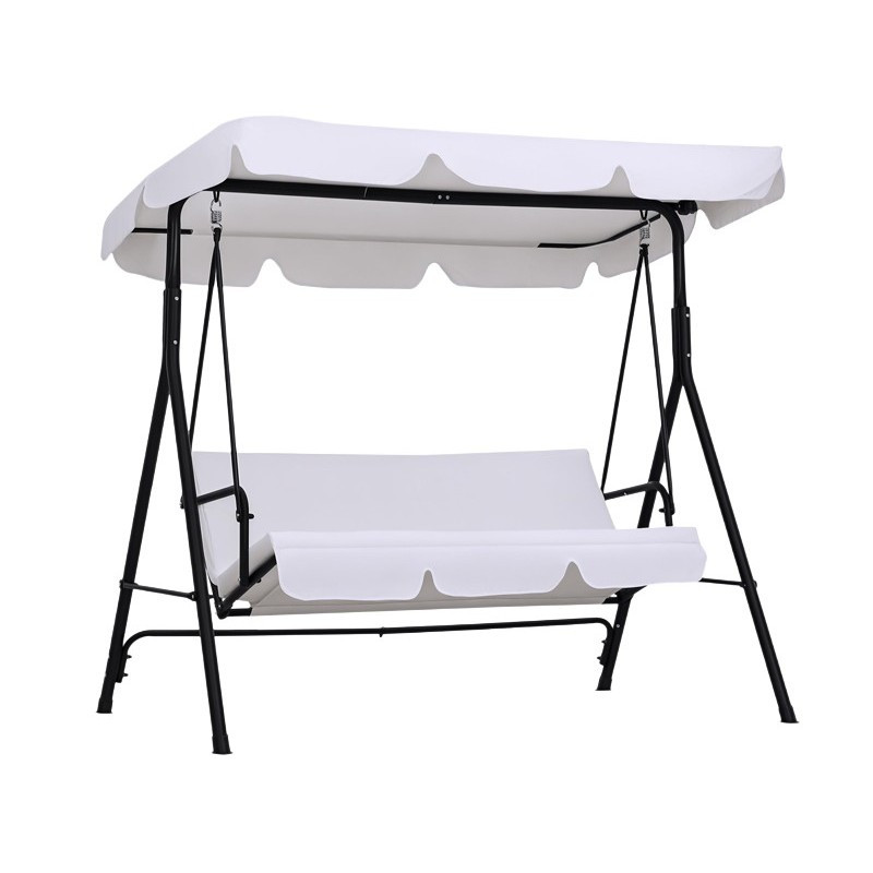 www.mipuntomovil.com Balancín de jardín con toldo fabricado con estructura de acero. Es para las tardes de verano, colócalo en el porche, terraza o jardín de tu casa y descansa mientras te balanceas en este cómodo asiento. Está indicado para que puedan sentarse de dos a tres personas. El asiento cuenta con respaldo fabricado de poliéster en gris oscuro,...