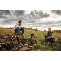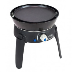 Tres superficies de cocción, tapa que puede actuar como un wok o una sartén, una superficie de parrilla plana con nervaduras, un soporte de ollas para hervir. Patas plegables para un almacenamiento compacto. Encendido piezoeléctrico automático. Incluye bolsa de almacenamiento duradera. Sartén grande. Superficies de cocción antiadherentes para facilitar la...