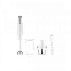 Batidora de mano con accesorios. Incluye vaso medidor, picador y varilla. Velocidad regulable. Potente motor de 1.500 W. Cuchillas de titanio. Varilla de acero inoxidable.