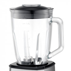 - Potencia 600 W. - Cuerpo de Acero inoxidable - Cuchilla de acero inoxidable. - Vaso de cristal de 1,5 litros