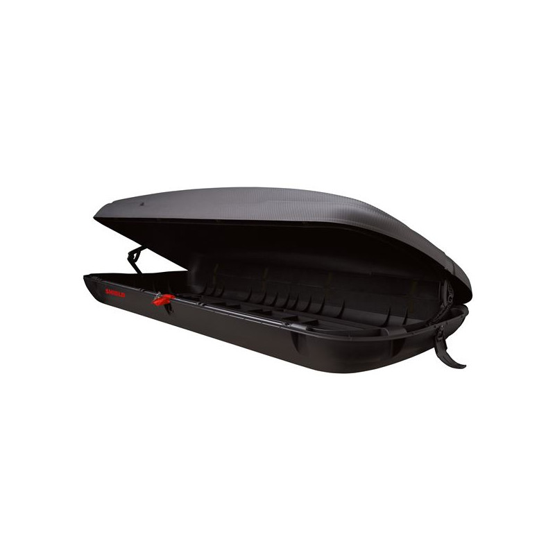 • Cofre de techo para vehículo con capacidad de 420 litros. • Apertura por ambos lado, clip en forma de U. • Color negro brillante. • Fabricado en material rígido de gran resistencia a los rayos UV, ABS PMMA. • Medidas: 178x78x32 cm.