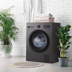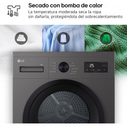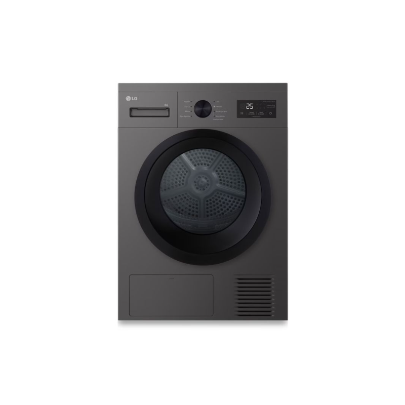 Secadora con bomba de calor Negro grafito - 8 kg Clase energética: D Garantía de por vida en el motor y compresor Display LED + Control táctil y dial 8 Programas: Algodón - Delicado - Mixtos - Lana - Ropa deportiva - Secado al aire (aire frío) - Eco - Aire caliente Final diferido 1-24 horas