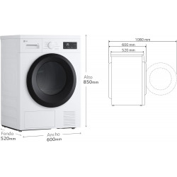 Secadora LG 9kg, A+++, con Bomba de calor Dual Inverter, Blanca, Serie 900 Altura (mm):850 Ancho (mm):600 Capacidad (kg):9 Color:Inox Eficiencia energética:A+++ Fondo (mm):615 Nivel de ruido:62 dB Tipo de secado:Bomba de calor