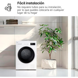 Secadora carga frontal de libre instalación con Bomba de Calor, 9 kg de capacidad, control de secado por sensor de humedad, Display LED táctil de gran tamaño, tambor SoftCare, iluminación interior del tambor, fin diferido hasta 24h, funciones Menos plancha, Media carga, Secado delicado y Pausa+carga, blanca, clase D.
