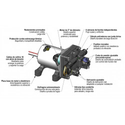 La bomba de agua a presión Shurflo 4009 Series (referencia 4009-201-A32K) es una solución optimizada de alto rendimiento para instalaciones de agua potable en autocaravanas, furgonetas camper y embarcaciones. Diseñada para ofrecer un flujo constante y suave, esta bomba cuenta con 4 cámaras independientes y bombea 9,1 litros por minuto, consolidándose como una de las opciones más eficientes y fiables del mercado.