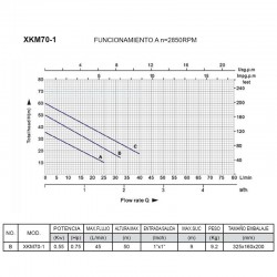 . Adecuada para bombear agua límpia o líquido no agresivo. Se utiliza en riego por caudal en jardinería, agricultura y viviendas.. Potencia: 2HP, 1.5 Kw. 2.000 wat. maximo. Caudal: 150 Litros minúto.. Entrada: 1". Salida: 1". Altúra máxima aspiración: 9 metros.. Altúra máxima elevación: 42 metros.. Letra en la curva: E. Peso: 21 Kg.
