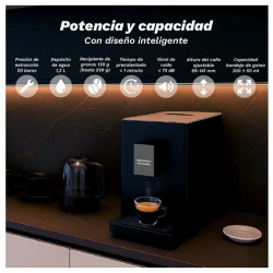 • Cafetera espresso para preparar todo tipo de cafés con una potencia máxima de 850 W. • Bomba de alta presión de 15 bares. • Vaporizador para espumar leche totalmente automático y emitir agua para infusiones. • Depósito de agua de 1.6 litros. • Controla la presión en tiempo real gracias a su manómetro.