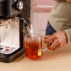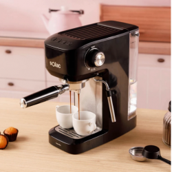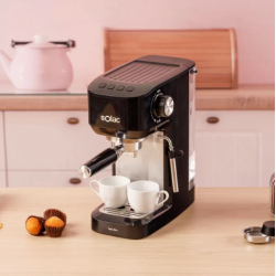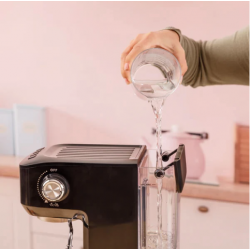 • Espresso con calidad profesional: su bomba de 15 bares garantiza la extracción perfecta del café, con un aroma intenso y una crema consistente en cada taza. • Depósito de agua extraíble de 1,7L: fabricado en material transparente para facilitar el llenado y la limpieza. Su capacidad permite preparar varias tazas sin necesidad de recargar constantemente.