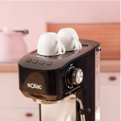 Tipo de Café Café molido Tipo: Espresso Voltaje de entrada AC (V) 220 - 240 V Pantalla incorporada: No Capacidad de reservorio de agua: 1,6 L Potencia (W): 850 W Presion máxima de funcionamiento: 20 bar Tipo de instalación: Encimera Capacidad en tazas: 2 tazas Tipo de control: Botones Longitud del cable (m): 0,77 m Color: Negro, Acero...