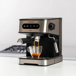 Tipo de Café Café molido Tipo: Espresso Voltaje de entrada AC (V) 220 - 240 V Pantalla incorporada: No Capacidad de reservorio de agua: 1,6 L Potencia (W): 850 W Presion máxima de funcionamiento: 20 bar Tipo de instalación: Encimera Capacidad en tazas: 2 tazas Tipo de control: Botones Longitud del cable (m): 0,77 m Color: Negro, Acero...