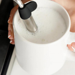 Cafetera súper automática Küken. Potencia: 1500W. Presión: Bomba de presión con sistema "AromaStrong" de 19 bares. Panel de control ON/OFF, opción café corto y café largo, espumador de leche. Con depósito de agua de 1,8 litros. Sistema de auto limpieza, vaporizador orientable y opción agua caliente para preparar infusiones.