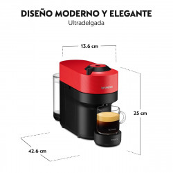 1200-1310 W. Frecuencia 50-60 Hz. Personalización de la cantidad y detención manual. Activación máquina: Pulsación del botón Espresso o Lungo. Depósito de agua extraíble. Recipiente de cápsulas utilizadas. Detención automática de la bebida. Recetas: Espresso, Lungo. Nº tazas preparadas a la vez: 1. Apagado automático programable 9 o 30 min. Bandeja de...