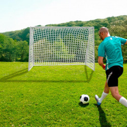 • Portería de fútbol para entrenamientos. • Estructura robusta. • Tubo metálico de 45 mm. • Red blanca resistente a la intempérie. • Invluye muro de tiro. • Medidas: 302x200x130 cm.