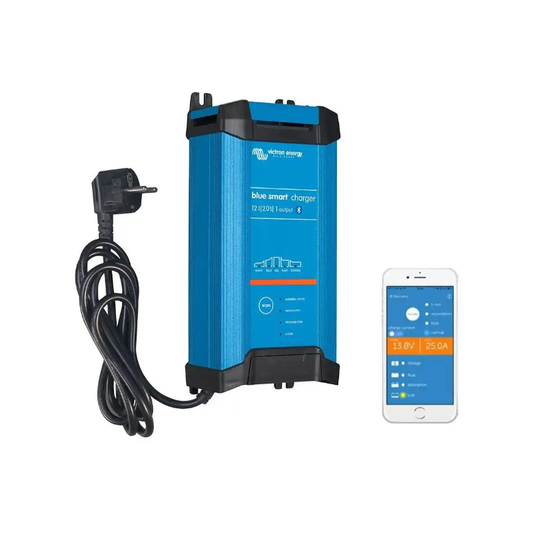 El nuevo cargador de baterías Victron Blue Smart IP22 con Bluetooth integrado. Con una eficiencia del 93% el cargador Blue Smart de Victron es una solución perfecta. Compatible también con baterías de litio LiFePO4.