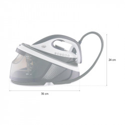 Centro de planchado con 3100W de potencia. Suela cerámica, sistema antical y antigoteo. Auto OFF, desconexión automática. Posición horizontal se apaga a los 30 seg. Posición vertical se apaga a los 8 minutos. Depósito de agua de gran capacidad: 1,5 l. Regulador de temperatura según tejido. Plataforma de reposo con sujeción anticaída. Modo ECO para un...