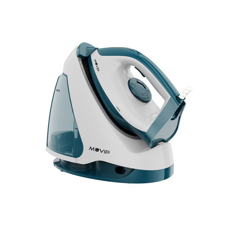 Centro de planchado con capacidad 1.2 litros. Potencia: 2.250W, Golpe de vapor max 40-60gr. Listo en dos minutos, depósito extraíble con llenado ilimitado. Planchado en seco y vertical, cartucho antical, suela cerámica de alta resistencia y deslizamiento. Práctico bloqueo de la plancha para transporte, fácil almacenamiento del cable.