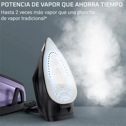 Centro de planchado con 3100W de potencia. Suela cerámica, sistema antical y antigoteo. Auto OFF, desconexión automática. Posición horizontal se apaga a los 30 seg. Posición vertical se apaga a los 8 minutos. Depósito de agua de gran capacidad: 1,5 l. Regulador de temperatura según tejido. Plataforma de reposo con sujeción anticaída. Modo ECO para un...