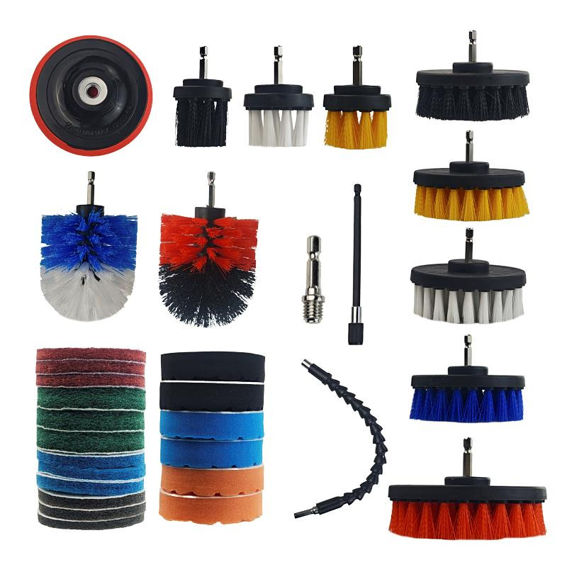 • Limpieza de superficies planas e irregulares. • Incluye: • Espigas de 1/4" (6mm). • 1 Cepillo de taza: 50mm x 1/4". • 1 Cepillo de taza: 75mm x 1/4". • 1 Cepillo de pincel: 25mm x 1/4". • 1 Cepillo circular: 25mm x 1/4". • 1 Cepillo circular: 38mm x 1/4".