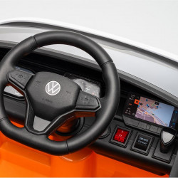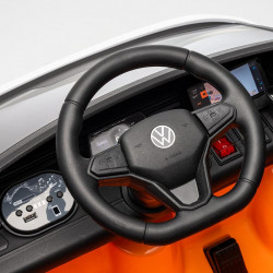 • Volkswagen E-Buggy de batería para niño/as. • Encendido con botón. • Acelerador de pedal en el pie. • Efectos de sonido. • Entrada USB/AUX. • Cinturón de seguridad. • Adecuado para niños de +3 años. • Control remoto.