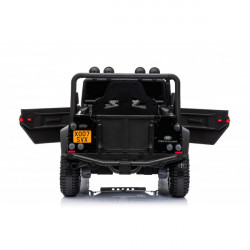• Material del cuerpo: plástico de alto impacto y resistente a los arañazos. • Material de la rueda: plástico EVA, similar al caucho. • Batería: 12V4.5A. • Volante multifuncional con efectos musicales. • Controlado por pedal eléctrico. • Control remoto de 2.4G. • Puertas que se abren. • Luces delanteras y traseras. • Panel con luz y música. • Motor: 25W...
