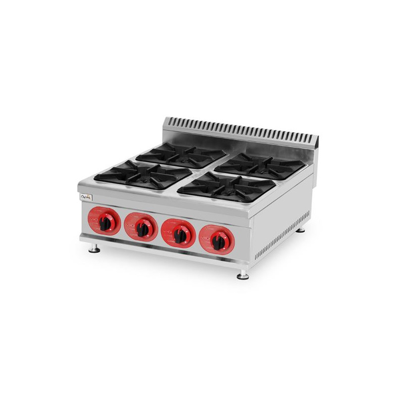 • La CHEF PRO CF0129 es una cocina a gas de cuatro quemadores, diseñada para cocinas profesionales que requieren potencia, resistencia y versatilidad. Con su estructura en acero inoxidable y fogones de hierro fundido, ofrece un alto rendimiento y durabilidad, ideal para restaurantes, hoteles, bares y servicios de catering.