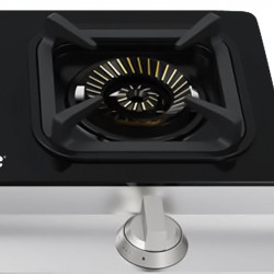 Material base: acero inoxidable Superficie de cristal templado negro Encendido piezoeléctrico Quemador de hierro fundido de alta calidad.