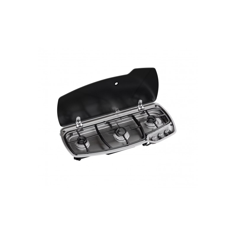 Cocina Dometic HSG3436 3xFuegos + Seno + Tapas Combinación empotrable de placa de cocción de 3 quemadores y fregadero con tapas de vidrio. 2 cubiertas de cristal de seguridad resistente al calor. Conexión para grifo de Ø 21 mm en el interior. Rejillas para artículos de cocina extraíbles y fáciles de limpiar. Soporte y tapas de los quemadores esmaltados....