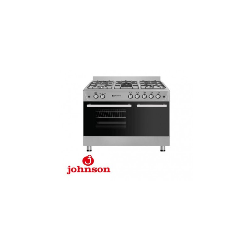 COCINA A GAS CON HORNO - JOHNSON COCI90BX1 , 5 FUEGOS, ZONA WOK TRIPLE LLAMA, ANCHO 90 CM, TAPA DE CRISTAL, ACERO INOXIDABLE.