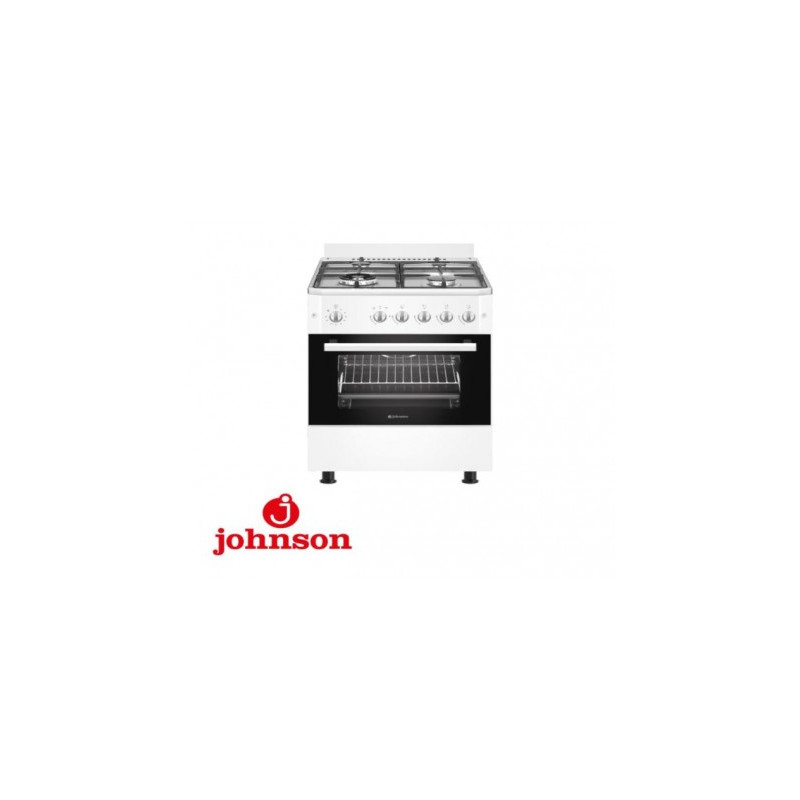 COCINA A GAS CON HORNO - JOHNSON COCI60BB1, 4 FUEGOS, ZONA WOK TRIPLE LLAMA, ANCHO 60 CM, TAPA DE CRISTAL, COLOR BLANCO.